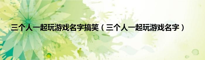 以上就是【三个人一起玩游戏名字搞笑,三个人一起玩游戏名字】相关内容。