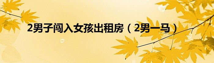 大家好,小问来为大家解答以上问题。2男子闯入女孩出租房,2男一马这个很多人还不知道,现在让我们一起来看看吧!