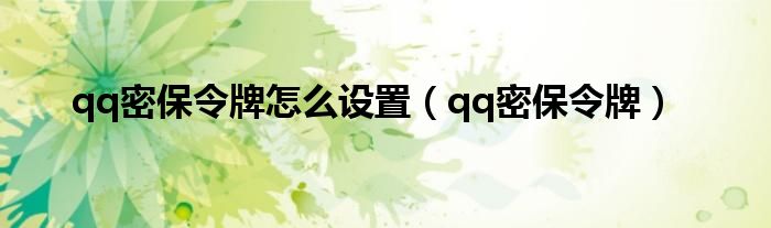 以上就是【qq密保令牌怎么设置,qq密保令牌】相关内容。