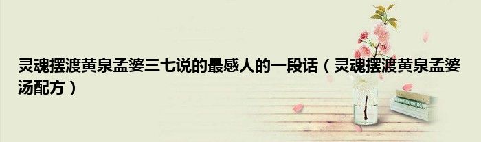 以上就是【灵魂摆渡黄泉孟婆三七说的最感人的一段话,灵魂摆渡黄泉孟婆汤配方】相关内容。