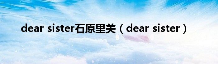 大家好,小问来为大家解答以上问题。dear sister石原里美,dear sister这个很多人还不知道,现在让我们一起来看看吧!