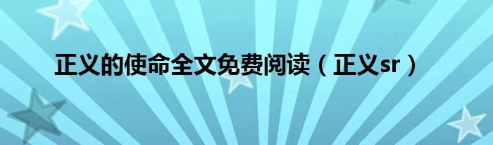 大家好,小问来为大家解答以上问题。正义的使命全文免费阅读,正义sr这个很多人还不知道,现在让我们一起来看看吧!