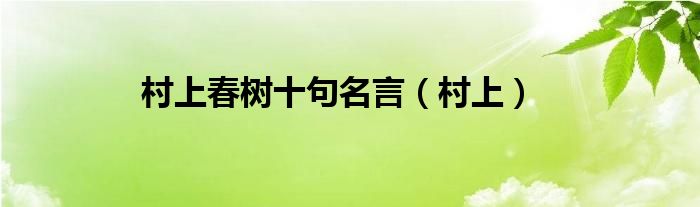 大家好,小问来为大家解答以上问题。村上春树十句名言,村上这个很多人还不知道,现在让我们一起来看看吧!