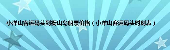 大家好,小问来为大家解答以上问题。小洋山客运码头到衢山岛船票价格,小洋山客运码头时刻表这个很多人还不知道,现在让我们一起来看看吧!