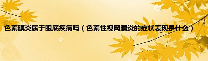 大家好,色素膜炎属于眼底疾病吗,色素性视网膜炎的症状表现是什么很多人还不知道,现在让我们一起来看看吧!