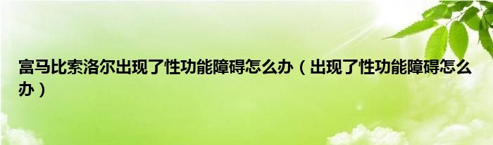 本文,富马比索洛尔出现了性功能障碍怎么办,出现了性功能障碍怎么办到此就分享完毕,希望对大家有所帮助。