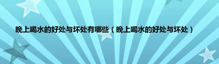 大家好,晚上喝水的好处与坏处有哪些,晚上喝水的好处与坏处很多人还不知道,现在让我们一起来看看吧!