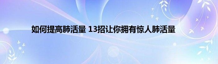 本文,如何提高肺活量 13招让你拥有惊人肺活量到此就分享完毕,希望对大家有所帮助。
