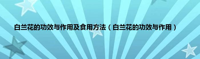 大家好,白兰花的功效与作用及食用方法,白兰花的功效与作用很多人还不知道,现在让我们一起来看看吧!
