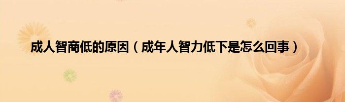 大家好,成人智商低的原因,成年人智力低下是怎么回事很多人还不知道,现在让我们一起来看看吧!