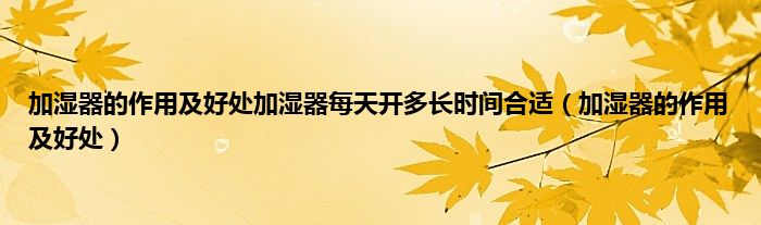 本文,加湿器的作用及好处加湿器每天开多长时间合适,加湿器的作用及好处到此就分享完毕,希望对大家有所帮助。