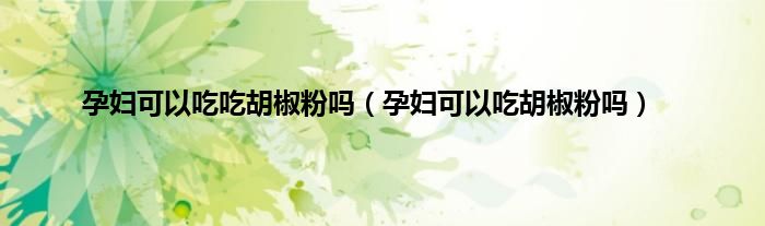 本文,孕妇可以吃吃胡椒粉吗,孕妇可以吃胡椒粉吗到此就分享完毕,希望对大家有所帮助。