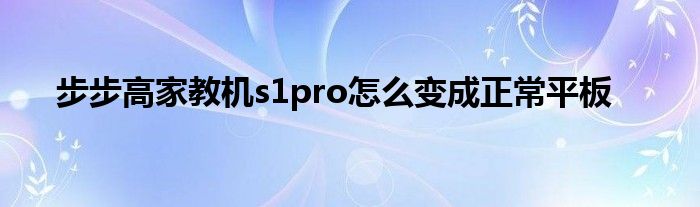 以上就是【步步高家教机s1pro怎么变成正常平板】相关内容。