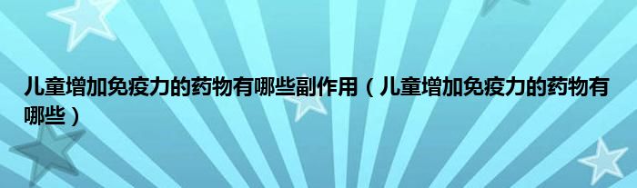 大家好,儿童增加免疫力的药物有哪些副作用,儿童增加免疫力的药物有哪些很多人还不知道,现在让我们一起来看看吧!