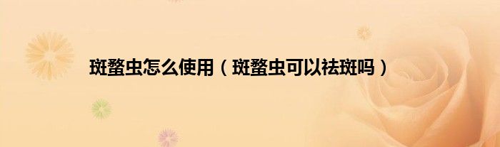 本文,斑蝥虫怎么使用,斑蝥虫可以祛斑吗到此就分享完毕,希望对大家有所帮助。