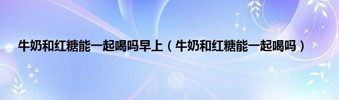 以上就是【牛奶和红糖能一起喝吗早上,牛奶和红糖能一起喝吗】相关内容。