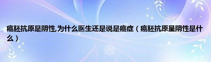 本文,癌胚抗原是阴性,为什么医生还是说是癌症,癌胚抗原呈阴性是什么到此就分享完毕,希望对大家有所帮助。