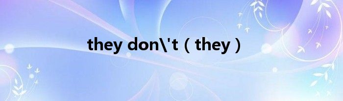 大家好,小问来为大家解答以上问题。they don't,they这个很多人还不知道,现在让我们一起来看看吧!