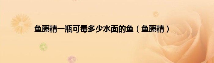 以上就是【鱼藤精一瓶可毒多少水面的鱼,鱼藤精】相关内容。