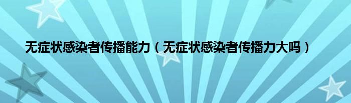 大家好,无症状感染者传播能力,无症状感染者传播力大吗很多人还不知道,现在让我们一起来看看吧!