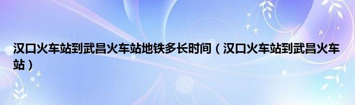 以上就是【汉口火车站到武昌火车站地铁多长时间,汉口火车站到武昌火车站】相关内容。