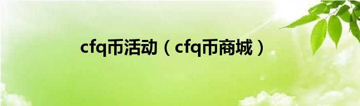 大家好,小问来为大家解答以上问题。cfq币活动,cfq币商城这个很多人还不知道,现在让我们一起来看看吧!