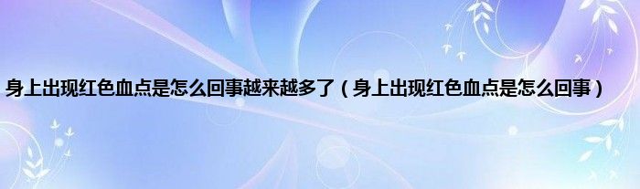本文,身上出现红色血点是怎么回事越来越多了,身上出现红色血点是怎么回事到此就分享完毕,希望对大家有所帮助。