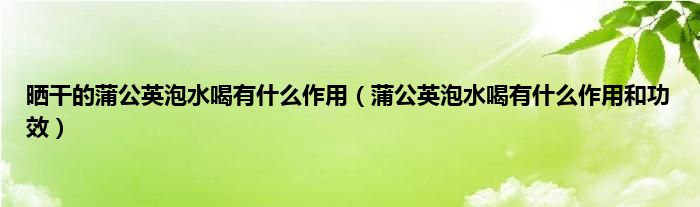 本文,晒干的蒲公英泡水喝有什么作用,蒲公英泡水喝有什么作用和功效到此就分享完毕,希望对大家有所帮助。