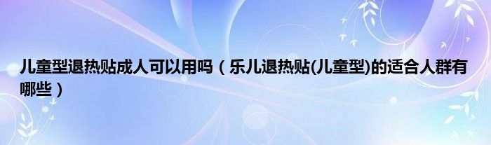 大家好,儿童型退热贴成人可以用吗,乐儿退热贴(儿童型)的适合人群有哪些很多人还不知道,现在让我们一起来看看吧!