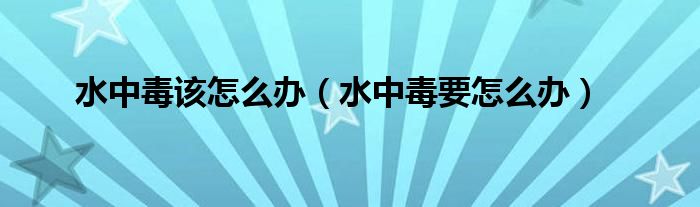 大家好,水中毒该怎么办,水中毒要怎么办很多人还不知道,现在让我们一起来看看吧!