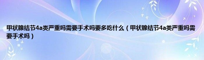 大家好,甲状腺结节4a类严重吗需要手术吗要多吃什么,甲状腺结节4a类严重吗需要手术吗很多人还不知道,现在让我们一起来看看吧!