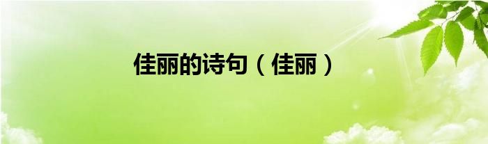 以上就是【佳丽的诗句,佳丽】相关内容。