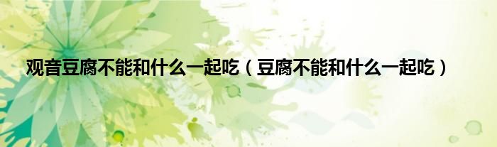 本文,观音豆腐不能和什么一起吃,豆腐不能和什么一起吃到此就分享完毕,希望对大家有所帮助。