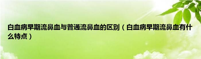 本文,白血病早期流鼻血与普通流鼻血的区别,白血病早期流鼻血有什么特点到此就分享完毕,希望对大家有所帮助。