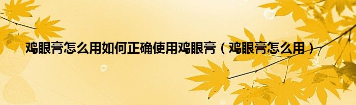 本文,鸡眼膏怎么用如何正确使用鸡眼膏,鸡眼膏怎么用到此就分享完毕,希望对大家有所帮助。
