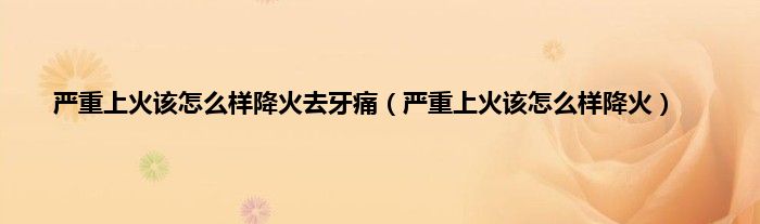 以上就是【严重上火该怎么样降火去牙痛,严重上火该怎么样降火】相关内容。