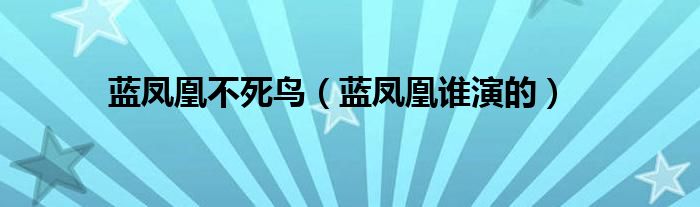 大家好,小问来为大家解答以上问题。蓝凤凰不死鸟,蓝凤凰谁演的这个很多人还不知道,现在让我们一起来看看吧!