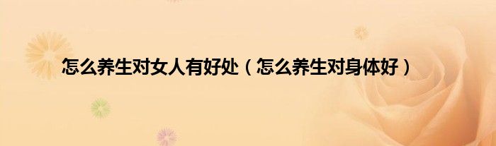 大家好,小问来为大家解答以上问题。怎么养生对女人有好处,怎么养生对身体好这个很多人还不知道,现在让我们一起来看看吧!