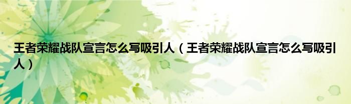 大家好,综合小编来为大家讲解下。王者荣耀战队宣言怎么写吸引人,王者荣耀战队宣言怎么写吸引人这个很多人还不知道,现在让我们一起来看看吧!