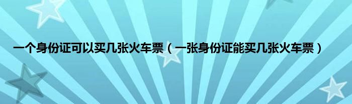 大家好,一个身份证可以买几张火车票,一张身份证能买几张火车票很多人还不知道,现在让我们一起来看看吧!