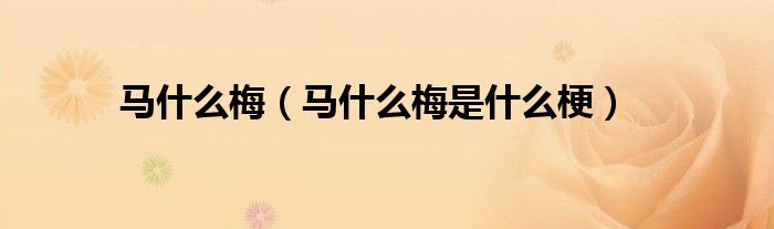 大家好,马什么梅,马什么梅是什么梗很多人还不知道,现在让我们一起来看看吧!