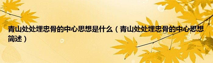 本文,青山处处埋忠骨的中心思想是什么,青山处处埋忠骨的中心思想简述到此就分享完毕,希望对大家有所帮助。