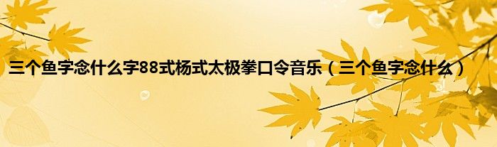 本文,三个鱼字念什么字88式杨式太极拳口令音乐,三个鱼字念什么到此就分享完毕,希望对大家有所帮助。