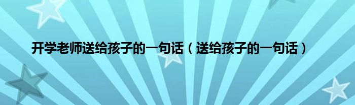 以上就是【开学老师送给孩子的一句话,送给孩子的一句话】相关内容。