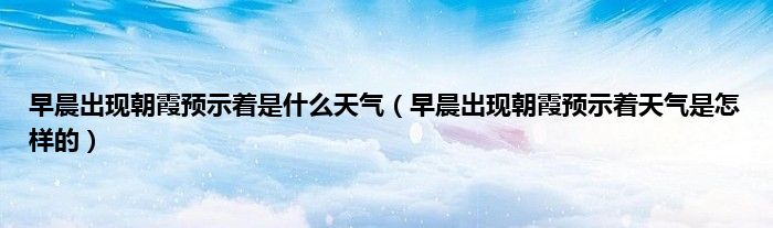 大家好,早晨出现朝霞预示着是什么天气,早晨出现朝霞预示着天气是怎样的很多人还不知道,现在让我们一起来看看吧!