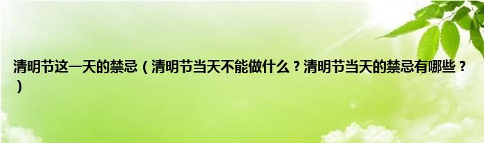 本文,清明节这一天的禁忌,清明节当天不能做什么?清明节当天的禁忌有哪些?到此就分享完毕,希望对大家有所帮助。