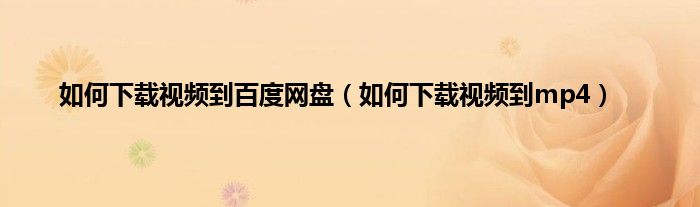 以上就是【如何下载视频到百度网盘,如何下载视频到mp4】相关内容。