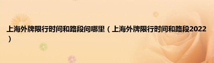 本文,上海外牌限行时间和路段问哪里,上海外牌限行时间和路段2022到此就分享完毕,希望对大家有所帮助。