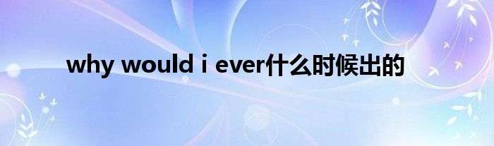 大家好,小问来为大家解答以上问题。why would i ever什么时候出的这个很多人还不知道,现在让我们一起来看看吧!