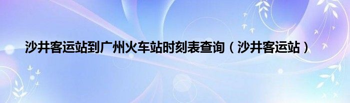 以上就是【沙井客运站到广州火车站时刻表查询,沙井客运站】相关内容。